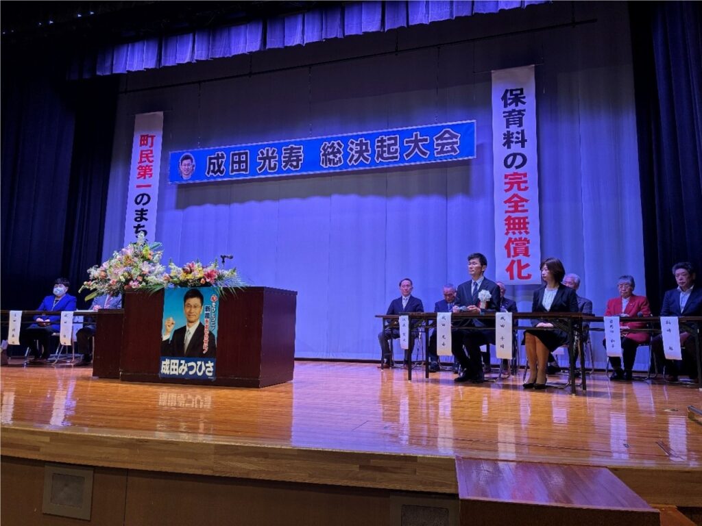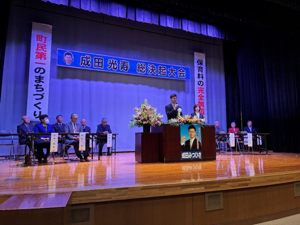 令和8年2月8日、おいらせ町民交流センターで「成田光寿総決起大会」を開催し、成田隆おいらせ町長、吉田絹恵前青森県議会議員はじめ、約350人の方にお集まりいただきました。私の政治家としての決意を述べたほか、ガンバロー三唱では、参加いただいた皆様から元気をいただきました。この日、皆さまからいただいたお言葉を胸に、これからの政治家人生を歩んでいきます。